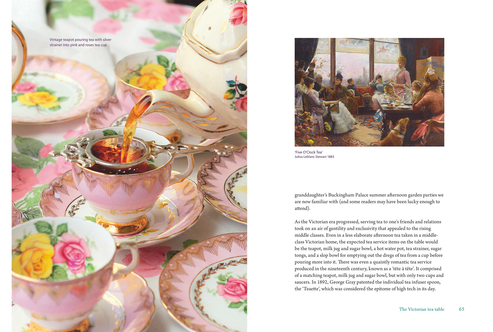In Please pass the scones: a social history of English afternoon tea, social historian and author Gillian Perry takes us on a highly entertaining whistle-stop tour, enhanced by many luscious illustrations to make you salivate, and to bring forth your own wonderful memories. The book covers many aspects of the afternoon tea story, including its origins, etiquette, dress codes, and the rise and fall of once-essential tea table features such as the slop bowl and the paper doily.